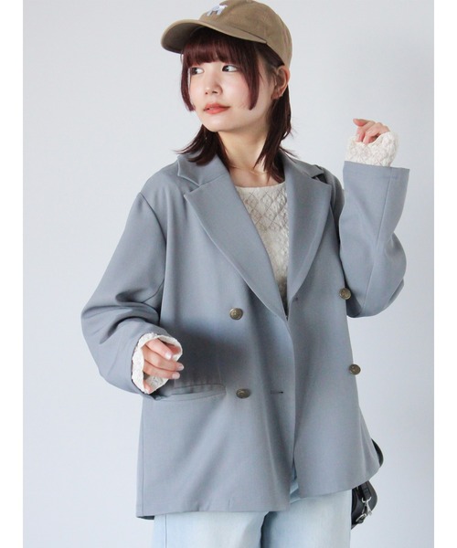 フロントのエンブレムボタンがトラッドな雰囲気を演出するジャケット。ベーシックなテーラードカラーになっており、きちんと感のある印象を与えます。動きやすいバックスリット入りもポイント。どんなスタイルにも合わせやすく、着回しの幅が広がるアイテムです。----------ECスタッフオススメコーディネート----------【2201040-12-13 ドッグプリントスウェット】とのカジュアルダウンスタイルや【2201147-12-13 レースカットソー】でガーリーMIXスタイルがオススメ♪短丈のミニスカートで、ハイソックスを合わせればトレンドのバレエコアスタイルも!ロングスカートを合わせれば、一気に大人っぽくなり雰囲気がガラッと変わります♪どんなボトムスにも合わせやすい万能ジャケットです!--------------------------------------------------※販売開始日は数日前後する場合がございますので予めご了承ください。※商品画像は、撮影環境やお客様のご利用のPC・スマートフォンのモニター環境などにより実物と色味に差異がある場合がございます。