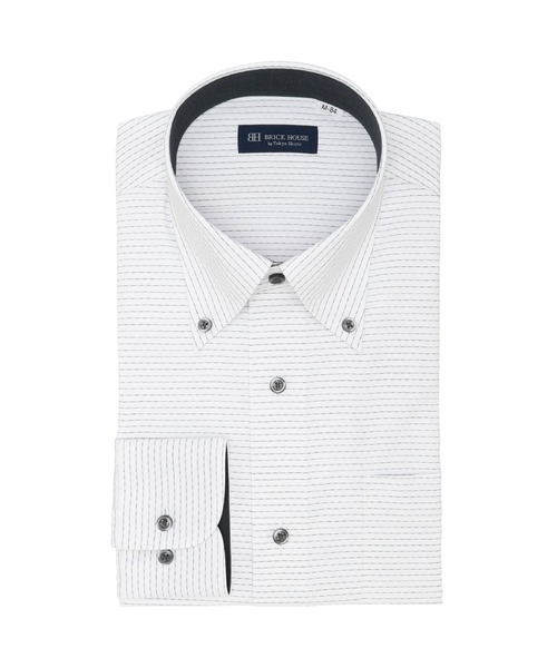 ◆SHEER LESS・透け防止シャツ◆ 幅広いコーディネイトに活躍する、 優秀アイテムのワイシャツ。 一方で、着用時の「透け感」が、 気になることは、ありませんか? 透けにくさを追求した透け防止 仕様(UVカット)のワイシャツで 清潔感のある着こなしが叶います。 台衿とカフス裏の別布使いが洒落感を 演出してくれ、汚れも目立ちにくく 一枚で着てもアクセントになるデザイン。 衿羽根が留まることで衿元がすっきり して見えるボタンダウンはノータイで ニットと組合せるのもオススメです。 ■仕様 カフリンクス使用可能な兼用カフス (アジャストボタン) 中丸カフス 胸ポケット(左胸)付き(ホームベース型) 背タック・背ダーツなし 前立:裏前立仕様 台衿内側・カフス裏側:別布仕様 ※別布を含む濃色生地は色落ち・移染が 発生する場合があるため、お洗濯時は 衣類の組合わせにご注意ください。 ※素材の特性上、過度の摩擦が 加わると毛玉が出ることがございます。 毛玉が発生した場合は、毛玉取り などで丁寧に取り除いて下さい。 ※サイズ[首回り42cm]のお届け商品の縫い付けタグはLL表記、 サイズ[首回り43cm]のお届け商品の縫い付けタグはXL表記でございます。 ZOZOTOWNの検索サイズと異なりますのでご注意ください。 【BRICK HOUSE by Tokyo Shirts / ブリックハウス バイ トウキョウシャツ】業界トップ水準を誇るノーアイロンの形態安定加工は自宅で洗濯可能でお手入れ簡単!高度な縫製技術を用いた高付加価値シャツでありながら選ぶことを気軽に楽しめます。ベーシックから多様なデザインまで幅広いバリエーションで豊富なサイズ展開で、ディテールの隅々にまで織り込んで一枚一枚丁寧に仕立てられたシャツです。