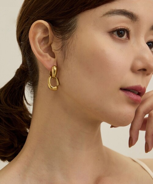 【素材】ステンレス素材を使用。【デザイン・シルエット】サントロペの港から、船着場にある係留用のムアリングボラードをモチーフに、トップパーツと下がりパーツをオリジナルで作成しました。ロープを引っ掛けるような強弱のある突起を有機的なラインで表現した2連フープピアス。下がりのパーツは取り外しが可能なので、シンプルなフープデザインも楽しんでいただけます。IPメッキ加工で汗や皮脂による変色が起きづらいステンレス素材を使用しているので、夏場の暑い時期まで長く愛用していただける逸品です。【カラー】ゴールド、シルバー※画像の商品はサンプルです。実際の商品と仕様、加工、サイズが異なる場合がございます。※撮影場所やライティング、お使いのモニター環境によって色の見え方が異なる場合がございます。※商品のカラーは画像の色味をご参照ください。動画は仕様説明のため、色味が実物と異なる場合がございます。