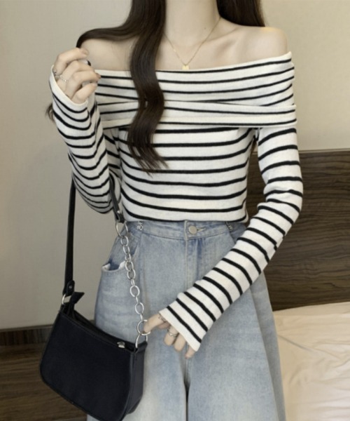 オフショルダー ボーダートップスが登場♪ 上品な肌見せがわかいいトップスです♬ 程よいフィット感が女性らしい雰囲気を演出♪ どんなスタイルにも合わせやすくこれからのシーズンに手放せないアイテムです。 ボトム次第で雰囲気が変わるのでカジュアルからきれいめまで普段のスタイリングを楽しめます♪ ※店頭及び屋外での撮影画像は、光の当たり具合で色味が違って見える場合があります。またご覧いただきますモニターや使用環境により実際の商品と多少色味が異なって表示される場合がございます。 予めご了承をお願いいたします。 ★商品のお気に入り登録→【カートに入れる】右側の♡をクリック 完売カラーの再入荷通知や、ラスト1点の通知、セールの通知も受け取ることができます。 ★ブランドのお気に入り登録→ブランドタグのページからお気に入りをクリック 新作商品や再入荷などブランドのお得な情報を受け取ることができます。 ※ご注文いただいた予約商品のお届け時期の確認は、注文履歴ページより行えます。 ※他のキャンペーンにより、期間中に価格が変動する場合がございます。 ※セールは予告なく終了させていただく場合がございます。