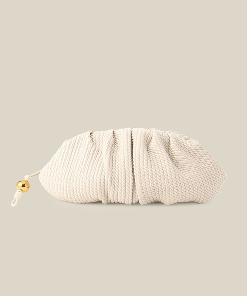 【デザイン・シルエット】 サントロペのインスピレーションから、ロープをイメージした表面感を加え、波打つようなボリュームあるタックを施した印象的なクラッチバッグに仕上げました。ゴールドの球体は、海に浮かぶブイのイメージです。 【素材】 羊革にロープをイメージした凸加工をしたフラッフィーな質感 【ラムレザー シリーズ】 同素材でサイズ違いの ラムレザーロープ柄クラッチバッグ/ミディアム(品番:GGF25020) ラムレザーロープ柄クラッチバッグ/ミニ(品番:GGX25010) がございます。 【IM ROPE'】 「ROPE'」は1968年から、いつの時代も“エレガンス”な女性像を描いてきました。 2025年SPRING COLLECTIONでは、ブランドのシグネチャーアイテムとして 愛され続けている「トレンチコート」「ジャケット」「バッグ」「パンプス」を発売します。 ※画像の商品はサンプルです。実際の商品と仕様、加工、サイズが異なる場合がございます。 ※撮影場所やライティング、お使いのモニター環境によって色の見え方が異なる場合がございます。 ※商品のカラーは画像の色味をご参照ください。動画は仕様説明のため、色味が実物と異なる場合がございます。