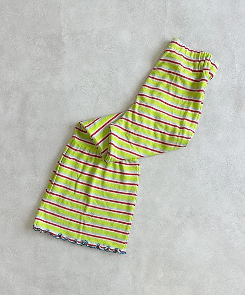 人魚の尾びれのようにファッと裾が広がるスタイル♪ 足長効果も期待できる優秀パンツ! トレンドをしっかり押さえたメローにもご注目! ■デザイン ギャザーいっぱいの裾の切り替えしでふわっとマーメイドシルエットに。 足長効果でスタイルアップ効果バツグン! マーキーズらしい目を引く総柄に、アクセントになるメローもポイント。 伸縮性に優れているので、着脱もしやすく動きやすさも◎ ■スタイリング インパクトのあるボトムスなので、シンプルなムジTシャツとの相性が◎ 大きめのTシャツやワンピースなどとコーデしてもカワイイ! ■生地感 タオルのような柔らかいパイル生地。 肌触りがとってもよく、伸縮性にも優れています。 ++++++++++++++++++++++++ 透け感:なし(ブラックのみ少しあり) 伸縮性:あり 生地の厚み:普通 裏地:なし ++++++++++++++++++++++++ ■リンクコーデアイテム キッズサイズ ・パイルマーメイドパンツ0010151009 ■色柄について プリントデザインの並び位置などが、商品1点ずつ異なります。お選びいただくことはできませんので、予めご了承くださいますようお願い致します。 ※モデルが着用している画像は、照明や日光などの撮影時の環境により実物と異なる色味になる場合がございます。 商品単体の平置き画像を実物に近いお色味になるよう努めておりますので、お色味のご確認は平置き画像をご参照くださいませ。 ※お使いのモニター環境によっても実物のお色味と異なって見える場合がございます。予めご理解の程よろしくお願いいたします。 ハートマークをポチッ! 気になる商品はお気に入り登録をお忘れなく! 商品のお気に入り登録をすると... [再入荷][残り1点][セール情報]を受け取れます。 MARKEY'Sをお気に入り登録すると... [新商品][再入荷]の情報をいち早く受け取れます。