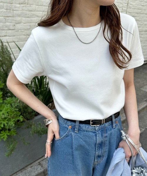 どんなコーデにもフィットする万能Tシャツ ●デザイン ミニマルで無駄のないシルエットが魅力のコンパクトTシャツ。 ほどよく身体にフィットしつつも、ぴたっとしすぎない絶妙なサイズ感で、女性らしいラインを自然に演出します。 ネックラインはやや詰まり気味のクルーネックで、顔まわりをすっきりと見せつつ、上品な印象に。 シンプルながらも今っぽさを感じる、毎日着たくなる万能アイテムです☆ ●素材 柔らかく肌なじみの良い素材 ストレッチ性もあり快適な着心地 *********************** 洗濯方法:洗濯機洗い(弱) 裏地:なし 透け感:オフホワイトのみややあり 伸縮性:あり 光沢感:なし 生地の厚さ:普通 *********************** ●スタイリング デニムに合わせてカジュアルに、スラックスやスカートでキレイめにと、シンプルなデザインで合わせるアイテムを選ばず、幅広いコーディネートに対応します。サロペットやジャンパースカートのインナーとしても活躍◎ ▼おすすめのスタイリングアイテム 【@yuyukekelife企画】ベルト付き欲張りストレートタックパンツ ロープベルトライトデニムワイドパンツ ライトデニムクラッシュワイドパンツ 【umm.】レース使いノースリチュニック ●STAFF着用コメント 153cmスタッフ(Mサイズ着用):程よくフィット感がありながらも窮屈さはなく、ボディラインをきれいに見せてくれます。柔らかい生地で着心地も最高です! 160cmスタッフ(Lサイズ着用):コンパクトでインナー使いしやすいです。今っぽいサイズ感でシンプルにデニム合わせだけでもきまります! 【入荷時期について】 入荷日ごとに販売数量が決まっているため、オンラインでは完売後に次期納期の数量にて予約販売を行っております。 店舗入荷時期と予約商品のお届け時期が異なる場合がございますので、予めご了承ください。 ※追加入荷のある商品もございますので、詳しい店舗入荷時期に関しましてはお近くの店舗へお問い合わせください。 ※店舗の在庫状況に関しましては、こちらのページに記載されている「店舗在庫」から確認にしていただけます。 「在庫あり」の表記でも、お取り置き分などでお客様に販売できない場合がございます。 ※予約商品でも、店舗では追加がない場合もございます。ご了承ください。 ※初回予約商品でも配送処理が発生するため、店舗より遅れてのお届けとなる場合がございます。