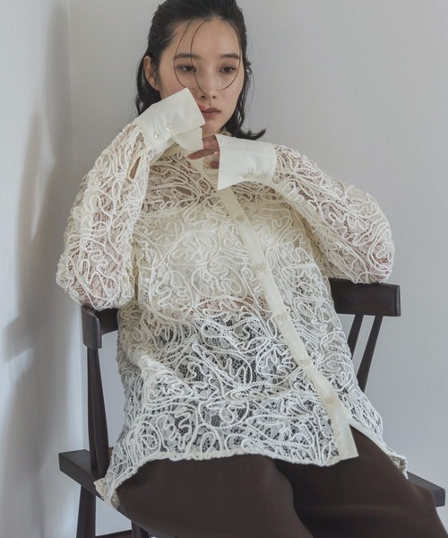 ◆Detailトレンド感のあるコードレースが目を引くシアーシャツ。レースの上からさらに細い糸で刺繍を縫い重ねることで立体感のある風合いが楽しめます。シルエットはゆとりのあるオーバーサイズで着るだけでお洒落にキマる一着◎◆Fabric--------------------------透け感:あり伸縮性:なし光沢:なし生地の厚さ:★★☆☆☆--------------------------※汗や水、摩擦により他のものに色移りすることがありますのでご注意ください。※濃色製品は色移りすることがありますので、他の物と分けて洗濯してください。※生産時期によりサイズや質感・色味に若干の個体差がみられる場合がございます。※商品画像は、光の当たり具合やパソコンなどの閲覧環境により、実際の色味と異なって見える場合がございます。予めご了承ください。※着用、お取り扱いの際は、商品についている品質表示とアテンションタグを必ずご確認ください。◆Information欲しいitemをお気に入り登録(♡マークをclick) ・お買いのがし対策…完売itemの再入荷やラスト1点の情報をお知らせ ・欲しいitemをお得にget…pricedownになったらいち早くお知らせ ・スムーズ検索…ZOZOのお気に入りアイテムページで簡単checkできるから、再検索不要♪