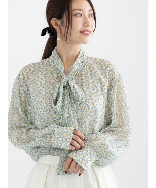 やわらかな透け感を演出するシフォン素材で仕立てられたブラウス。首元にはボウタイを施しており、コーディネートのアクセントになります。カラーによって様々な柄を使用し、雰囲気の変化を楽しめるのもポイント◎パンツスタイルと合わせたきれいめなスタイリングもおすすめです。【その他採寸】F 着丈:[前]62cm[後]72cm ※商品画像は、撮影環境やお客様のご利用のPC・スマートフォンのモニター環境などにより実物と色味に差異がある場合がございます。★《お気に入り登録》でお得な情報をGET★① 商品ページ内のハートマークをクリック!② 以下通知が受け取れます!「再入荷」「ラスト1点」「特別セール」etc..\ブランド、ショップのお気に入りも是非!/