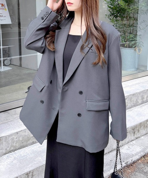 サッと羽織るだけでこなれ感たっぷりのトレンドコーデが完成。 ビッグなシルエットでラフに着られるテーラードジャケットです。 クラシカルなダブルボタンデザインも魅力。 ニットなどをインしてももたつかず、すっきりシルエットで着られます。 フロントには胸ポケットと両サイドのフラップポケット付き。 バックはスリット入りで動きやすいのもポイントです。 ・ポケットあり ・バックスリットあり ★こちらの商品はセットアップで着用できます セットアップ対応アイテム ・1251-300057【ハイウエストキュロットパンツ】 ・1999-300024【ラップミニスカパン】 ・1251-300052【ボックスプリーツスカパン(セットアップ対応)】 【以下グレー参考。カラーにより多少の誤差あり】 ・透け感:透けない ・伸縮性:なし ・生地の厚さ:普通 ・裏地:あり