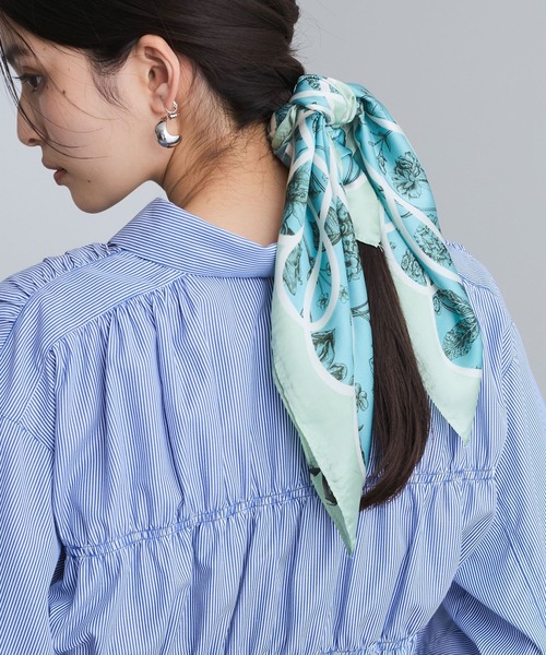 ぐっと洒落たスタリングにアップデートできるスカーフ。◆2025春夏◆【デザイン・シルエット】品のある滑らかな風合いの生地です。通称「マチコ巻き」をしやすいサイズの70cm。大きな面積でお使いいただいても、折り畳んだり巻いたりと小さな面積でお使いいただいても上品ながら可愛さを感じられるアートです。【カラー】上品で春夏に使いたい爽やかさを感じられる3色展開。【おすすめのスタイリング】ビスチェやラップスカートとしてパンツにレイヤードするのがおすすめ。ベルト使いや頭、首元、バッグなどにアクセサリー感覚で取り入れるのもおすすめです。※画像の商品はサンプルです。 実際の商品と仕様、加工、サイズが若干異なる場合がございます。