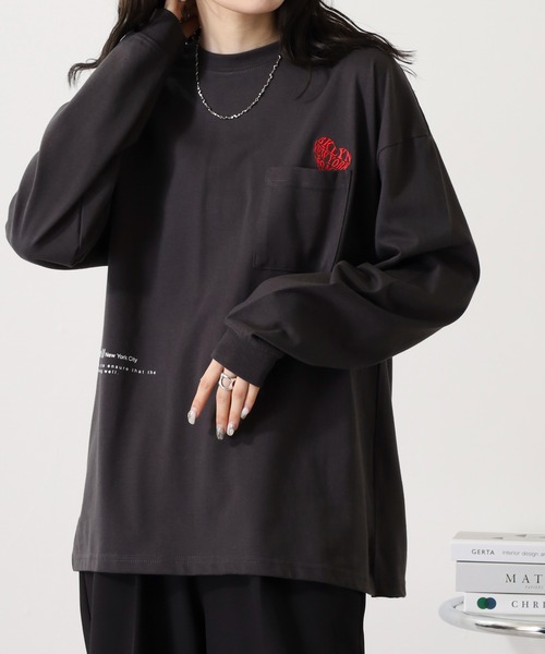 フリントワンポイント刺繍&プリントのレトロ&ストリートな長袖Tシャツ ■商品紹介 毎シーズン大好評のフロント刺繍のデザイン。カーゴパンツやデニムパンツとの相性抜群でこれ1枚でもおしゃれな雰囲気になります。 ・ポケットからはみ出たハート刺繍がさりげないアクセントでアシンメトリーに配置されたプリントもデザイン性が高いTシャツです。 ・フロントはワンポイント刺繍&バックはインパクトのあるプリントのレトロストリートなTシャツです。春コーデに最適です。 ■サイズ ・オーバーサイズ、ワイドシルエット ■素材 ヘビーウエイトのしっかりした生地 ----------------------------------------- ・生地の厚さ:厚い〇●〇〇〇薄い ・伸縮性:縦ややあり・横あり ・透け感:なし ・ホワイト透け感:ややあり ・裏地:なし ・光沢:なし ----------------------------------------- ■シルエット ゆったりとしたオーバーサイズは、ユニセックスなサイズ感で友達同士やカップルでのリンクコーデにもおすすめ! ■コーディネート メンズ、レディース問わず着用できるユニセックスデザインです。 旬なダメージデニムと相性がいいです。 カーゴパンツ、パラシュートパンツ、定番にスキニーパンツ、様々なスタイルに合わせやすいTシャツです。 季節に合わせ、Gjジャンやジップパーカー、カーディガンやジャケットなど羽織ものをプラスしてもトレンド感アップ。 ファッション小物では、ビーニー、バケットハット、キャップ、サングラス、リングなどの小物とも相性抜群。 普段使いはもちろんですが、おうち時間(ルームウェア可)でストレスなく快適に過ごしたり、お友達とペアで着たり、ユニセックス使用にも利用可能なアイテムです。 『OKシーン』 旅行・新生活・紅葉・公園・ホワイトデー・バレンタイン・フェス・ライブ・ピクニック・レジャー・ドライブ・デート・キャンプ・アウトドア・デート・クリスマス・ショッピング・20代・30代・秋・冬・春 ■カラー ホワイト・ホワイト系その他2・・ブラック・スミクロ・ブラック系その他2・ライトブラック・ブルー系その他・サックスブルー 全8色展開。 ※商品のお色について※ ・ご利用頂いておりますパソコンのモニターや状況によりまして、実際のお色と異なって見える場合が御座います。 ・加工の関係上多少の誤差が生じる場合がございます。 【お買いものをお楽しみいただく為の方法】 ★商品のお気に入り登録★ ・完売カラーの再入荷通知や、ラスト1点の通知、セールの通知も受け取ることができます。 ★ブランドのお気に入り登録★ ・新商品や再入荷など、いち早くブランドのお得な情報を受け取ることができます! ※他のキャンペーンにより、期間中に価格が変動する場合があります。 ※セールは予告なく終了させていただく場合もあります。