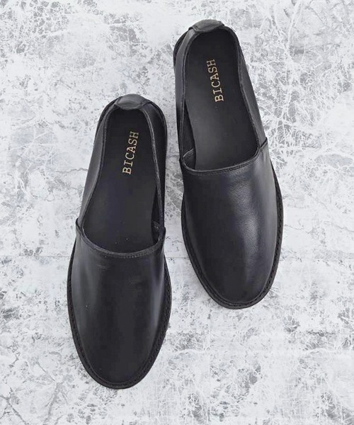 BICASH新作のエスパドリーユデザインのレザースリッポン。 プレーンなデザインは様々なスタイルに馴染み、シーン問わずご愛用頂けます。 BICASH (ビカーシ) 2011年にスタートしたRAYAN LIMITEDのオリジナルレ-ベル。 シュ-ズ、バッグ、レザ-グッズのデザインを東京のデザインチ-ムが行い、バングラデシュの 自社工場で熟練した職人がハンドメイドにて一貫生産しております。 レザ-の産地として名高いバングラデシュのトップタンナ-へBICASHオリジナルレザ-を別注し、 ベ-シックな定番モデルやシーズンセレクトモデルを展開しております。
