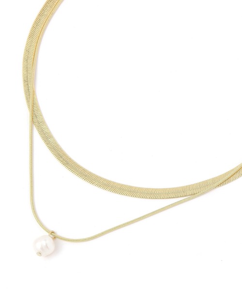 ーーー2連の華やかなネックレス。つるんとした質感としなやかさが特徴のスネークチェーンとパールの組み合わせが◎シンプルコーディネートのアクセントにしたり、オケージョンでのご使用もおすすめです。ーーー