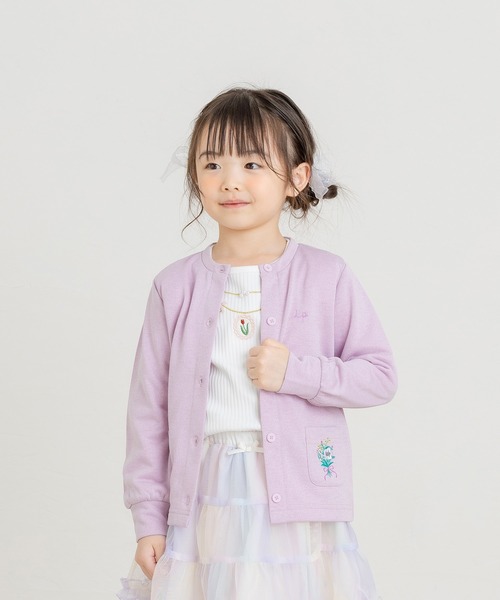 ラメ入りの肌触りの良い裏毛カーディガン 肌寒いときに大活躍のカーディガン❀ ポッケの部分に花束刺繍のワンポイントあり◎ ブラック・ラベンダー・シルバーの3色展開で合わせやすいカラー! 外出の際に1枚持っておくと安心です♡ *80、90サイズのみ左肩にボタンがついており、脱ぎ着がしやすくなっております。 *DILのベビー商品は、全てホルマリン含有率の検査を通っておりますのでご安心下さい。 la poche biscuit(ラ・ポシェ・ビスキュイ)は、ナチュラルテイストに可愛いモチーフと、さりげなくトレンドを取り入れ、女の子に寄り添うワードローブを提案するブランド。 心躍る華やかなコーディネートが毎日をハッピーに彩ります。