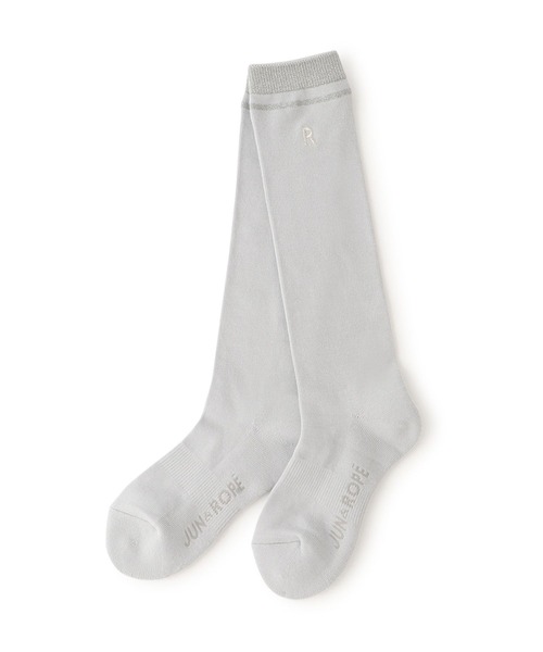 さりげないラメ使いが合わせやすい万能ハイソックス 【デザイン】 Rロゴとラメのさり気ない配色が上品な印象のハイソックス。 穿き口のラメラインが控えめながら上品さを際立てるアクセントに。 履き口リブのラメ部分は、表面はキラッと裏の肌側にはラメがあたらない編み方にしているので敏感肌の方も安心なのが嬉しい構造。 【素材】 ソフトなタッチと吸水速乾機能が付いた「COOLMAX」を採用。 足裏の内側はパイル地なので汗をしっかり吸収し、暑い日の長時間の着用でも快適。 ※実際の商品はお客様のお使いの端末や閲覧環境により、写真と実物の色味や質感が多少異なって見える場合がございます。予めご了承ください。 ※画像の商品はサンプルです。実際の商品とは仕様・加工・サイズ・素材が若干異なる場合がございます。 JUN&ROPE’(ジュンアンドロペ) 2つのゴルフコース「ジュンクラシックカントリークラブ」「ロペ倶楽部」を有するJUNがお届けするゴルフウェアブランド。 ゴルフウェア レディース / ゴルフウエア レディース / ゴルフウェア / ゴルフウエア / ゴルフ / ジュン / JUN ROPE'ゴルフ / ROPE'ゴルフ
