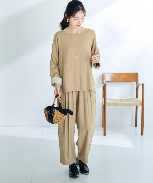 大人の余裕漂う、リネン混ゆったりタックテーパードパンツ ■デザイン 程よいゆとりでリラックス感も抜群。たっぷりのタックで気になるお腹周りをさりげなくカバーしてくれるので体型カバーにも最適です。 窮屈さを感じずに快適な穿き心地を実現しました。 裾に向かって細くなるテーパードシルエットが、美脚効果も期待できます。 ■素材 さらりとした肌触りのリネン混素材を使用した、 大人の女性のためのゆったりタックテーパードパンツ。 麻混ならではの清涼感と、上品な光沢が魅力です。 ■おすすめのスタイリング カジュアルだけどどこか上品な印象で、 普段使いからオフィススタイルまで幅広く活躍してくれるアイテムです。 同素材のジャケットと合わせれば何通りもの着こなしが楽しめ、 ナチュラル感あるきちんとコーデが完成します。 <仕様> 透け感:ややあり(ベージュ) 伸縮性:なし 生地の厚み:普通 光沢感:なし 裏地:なし ポケット:あり(両脇) ウエスト:総ゴム(ひも入) 季節:春・夏・秋 シルエット:ゆったり <洗濯方法> 手洗い ●SMILE LANDコンセプト● 「好きな服だけ着ていたい!」 自由なサイズ選びで楽しめるファッションを提案します。 @la_smileland【公式インスタグラムアカウント】 公式インスタグラムにてプラスサイズモデルさんの着用コーデや動画など随時更新しております。 是非チェックしてみてください♪ ●サイズ● SMILELANDは大きいサイズ専門店として、サイズ設計にとことんこだわります! 着心地良くおしゃれを楽しめるよう、独自のサイズ設計になっております。 そのため、他ショップ様のサイズより少し大きめに感じられることがあります。 <対応サイズ>を参考にしていただき、お買い物をお楽しみください。 <対応サイズ> L :ウエスト:69~77/ヒップ:92~100 LL :ウエスト:77~85/ヒップ:97~105 3L :ウエスト:85~93/ヒップ:102~110 4L :ウエスト:93~101/ヒップ:107~115 5L :ウエスト:101~109/ヒップ:112~120 ※こちらはヌードサイズです。 ※平置きのアイテムサイズとは異なる計測方法となりますのでご了承ください。 #SMILELAND#スマイルランド #トレンド#ディティール#着映え#1枚あると便利 #トレンドカラー#定番カラー#抜け感 #ゆったり#おでかけ#体型カバー#二の腕カバー#長め裾 #大きいサイズ#プラスサイズ#大きいサイズレディス #ボディポジティブ