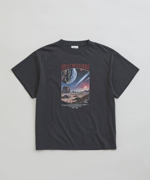 パリの古い映画館のレイトショーで見た、昔のSF映画をイメージしたグラフィックTシャツ。シンゾーンフィルム社が作った架空の制作会社のロゴも入った遊び心満点の1枚。ボディには、ヴィンテージライクな質感を感じさせる素材をセレクトしました。程よいサイズ感が魅力です。