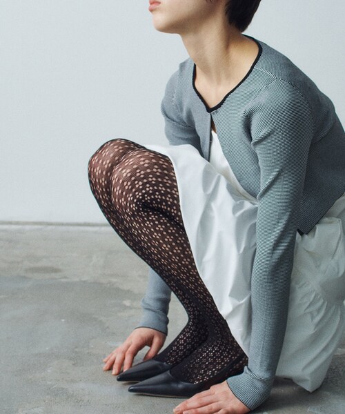 【25SS】 今大注目のトレンド、レースタイツ。 少し厚めのドットレースストッキング。 ミニ丈のボトムスに合わせてレースタイツを主役としても良し、ロングスカートなどに合わせてさりげなく覗かせるのも◎。 ショート丈のトップスに、レースタイツのウエスト部分だけをチラ見せする着こなしもおすすめ。 ぜひ今年取り入れていただきたいアイテムです。 ◆シリーズ piedi nudi | flower lace tights(R99-02117) FREE:対応サイズフリー #トレンド #タイツ #レース #レイヤード #小物 #ドットレース ※照明の関係により、実際よりも色味が違って見える場合があります。また、パソコン・スマートフォンなどの環境により、若干製品と画像のカラーが異なる場合もございます。 店舗へのお問い合わせ商品番号:R99-02118 ●製品寸法: FREE:対応サイズフリー 備考:
