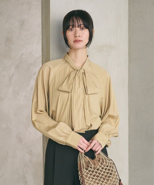 WEB限定 Wardrobe DAILY MINIMALカジュアル、仕事、オケージョンなど、さまざまなシーンで活躍するウェアを軸に、着回しやすくミニマルスタイルが叶う “Wardrobe DAILY MINIMAL”。シンプルながら抜け感のあるデザインは、洗練された女性に向けておすすめです。デイリーづかいしやすい快適な着心地を求めて素材選びからこだわりました。トレンドのリボンディテールで魅せるフェミニンブラウス■デザイン大きめなボウタイが存在感を発揮するプルオーバーブラウス。幅広のタイ部分は二つ折りですっきりとさせたり、広げてボリュームを出したりと、結び方次第で異なる印象を与えます。ネックの左右で縫い留める位置を変えており、中心だけでなく、やや斜めにリボンを結ぶことも可能なデザイン。背後に垂らしたり、ぐるぐると巻き付けてスカーフのように見せるなど、さまざまなアレンジを楽しめます。■素材レーヨンの上品なつや感とナイロンのややラフなシボ感が特徴。さらりとした軽い肌当たりと、ご自宅での手洗いが可能な利便性の高さも嬉しいポイントです。■コーディネート着るだけでコーデが華やぐ主役級トップス。ジャケットやジレ、オールインワンなどと合わせれば、セレモニースタイルも難なくきまります。きちんと感を活かしたオンコーデはもちろん、デニムやスウェットなど、カジュアルアイテムの外しとしてもおすすめです。============================裏地:なし透け感:ホワイトのみややあり伸縮:なし光沢感:ややありケア方法:手洗い可============================【注意事項】※こちらの商品は一部店舗でもお取り扱いがございます。展開店舗につきましては、店舗在庫検索をご確認ください。※商品を使用前に、タグ等に記載されている「取り扱い上の注意書き」、「洗濯表示」を必ずご確認ください。※商品画像は、光の当たり具合やパソコンなどの閲覧環境により、実際の色味と異なって見える場合がございます。あらかじめご了承ください。お問い合わせの際は、ユナイテッドアローズ カスタマーサービスデスクまで下記の品名/品番をお申し付け下さい。品名:★by RY/NY RBN TIE SHT 品番:16216991836