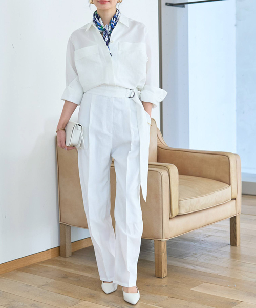 大人カジュアルにぴったりなワークテイストデザインを取り入れたオールインワン。 強撚糸ツイルでしわになりにくく、 うっすらと光沢のあるメンズライクな素材が カジュアルになりすぎず、大人な洗練された印象に。 全体のシルエットやラインは女性らしさを意識した オーバーすぎない形に仕上げており、 ウエスト部分にベルトがあしらわれていることで、 スタイルアップ効果も抜群です。 シンプルでありながらも、ディテールに こだわりが感じられるデザインが日常のコーディネートにも便利で、 1枚でしっかりとしたスタイルを作り出します。 【注意事項】 ※商品画像は、光の当たり具合やパソコンなどの閲覧環境により、実際の色味と異なって見える場合がございます。あらかじめご了承ください。 ※画像の商品はサンプルです。実際の商品と仕様、加工が若干異なる場合があります。 ※サイズ表記はあくまで目安となります。 ※その他の予約商品、通常商品との同時決済はできません。 ※入荷状況により、お届け予定が前後する場合があります。 ※お客様への発送が店頭販売より遅れる場合もあります。 ※追加生産商品は、一部の店舗、通販で販売中の場合がございます。予めご了承下さい。 ※商品を使用前に、タグ等に記載されている「取り扱い上の注意書き」「洗濯表示」を必ずご確認ください。 ※商品に不良が無い場合、包装紙および箱の彼損がございましても発送いたします。あらかじめご了承ください。