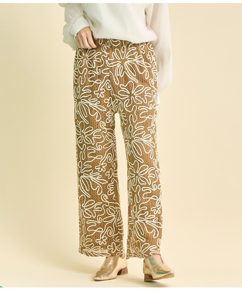フラワーコード刺繍が目を引くワイドパンツ。 ●これからの季節に最適な総レースが涼し気で軽やかな一枚。 ●ウエストはゴム仕様なので、着心地がリラクシーな所も嬉しいポイント。 ●スニーカーやローファー等のローヒールでも合わせやすい着丈なのでデイリーに着回し可能◎ ●同素材を使用した【フラワーコード刺繍 ワイドスリーブ シャツ】とセットアップでの着こなしもおすすめです◎ ※ストレッチ若干あり※裏地あり※ポケットあり※ウエストゴムあり ※商品のお取扱いに関しましては、商品に付属のアテンションカード、洗濯ネームをご覧ください。 ※モデル着用画像は光の当たり具合で色味が違って見える場合がございます。 ※商品の色味の目安は、商品単体の画像をご参照ください。 【お買いものをお楽しみいただく為に!】 ▼商品のお気に入り登録 完売カラーの再入荷通知や、ラスト1点の通知、セールの通知も受け取ることができます。 ▼ブランドのお気に入り登録 新商品や再入荷など、いち早くブランドのお得な情報を受け取ることができます。