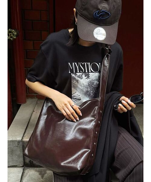 【2025 SPRING COLLECTION】収納力抜群!大容量のレザーバッグヴィンテージ加工がトレンドライクで◎■アイテム形はシンプルながらも、サイドにハトメのデザインやショルダー部分も金具でアクセントを付けた機能性とデザイン性を兼ね備えたレザーバッグ。レザーの素材感も若干シワ加工の入った、程よくヴィンテージ感のある素材を使用しております。デイリー使いはもちろんですが、通勤通学や1泊2日の小旅行にもおすすめです。金具部分でショルダーの長さを調整できるので、お好みの長さでご利用いただけます。【知って得する便利機能◎ 】■商品のお気に入り登録再入荷時、ラスト1点の時にお知らせします。■ブランドのお気に入り登録新商品やお得な情報など、いち早くお得な情報をゲット!ぜひご活用ください。※着用画像はフラッシュの加減で実際の製品と色味等が異なる場合がございますので、生地のズームアップ画像をご確認ください。※ご利用の端末画面の設定により実際の商品と色味が異なる場合がございます。