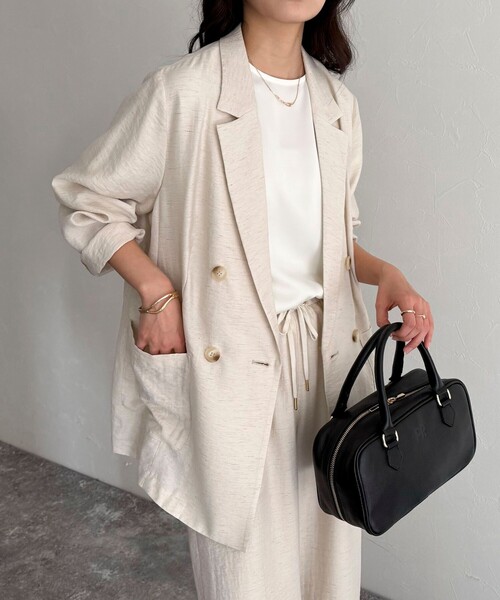 ◇fredy emue◇ 【2025 SS】 こなれた雰囲気に仕上がるリネン混スラブツイルダブルジャケット ●point ・軽やかで清涼感漂うリネン混素材のダブルジャケットです ・軽くて通気性もあり、春夏シーズンに合わせやすい1点! ・きちんと見えも叶うのでオンオフ問わず着用していただけます ・身体のラインを拾いすぎない程よくゆとりのあるシルエットで、パンツやスカートなど様々なボトムスと好相性です ・ワンピースにさらっと羽織ったり、デニムに合わせたカジュアルな着こなしがおすすめです ・同素材のパンツとのセットアップ着用もオススメです(【5-0021-2-29-003】リネン混スラブツイルイージーパンツ) 透け感:ややあり 裏地:なし 伸縮性:なし 光沢感:なし 洗濯:手洗い可 ●お取扱い上のご注意● *商品を長くご愛用していただきたいため、アテンションタグがある場合は必ずご確認の上、着用又はお取り扱い下さい。 *画像の商品はサンプルとなりますので実際の商品と仕様(主にファスナー・釦等の付属品)、加工、サイズが若干異なる場合がございます。 *店頭及び屋外での撮影画像は、光の当たり具合で色味が違って見える場合があります。商品の色味は、スタジオ撮影の画像をご参照下さい。 *商品画像に関しては出来る限り忠実に表示出来るよう努めておりますが、お客様がご利用のモニターの設定及び特性により、実際の商品と比較し色味に若干の誤差が生じる場合があります。 *製品洗い加工の商品は、多少の歪み、シワなどが見られたり、風合いやサイズ等が1枚1枚異なります。汗や雨等で濡れた時や、摩擦により色落ちし、他の衣料を汚すことがありますので(特に濃色のもの)ご注意ください。 *この製品はデザイン上、モノフィラメントを使用しております。特にお肌の弱い方は下に1枚着用することをおすすめします。 ※サンプルでの採寸のため、サイズ表はあくまで目安となります。予めご了承ください。 ◇商品のお気に入り登録◇ 【お気に入りに登録 ♡マークをクリック】を是非ご活用ください! 再入荷の通知や、ラスト1点の通知、セールの通知がいち早く届きます。 ◇ブランドのお気に入り登録◇ 新商品や再入荷など、いち早くブランドのお得情報が届きます。