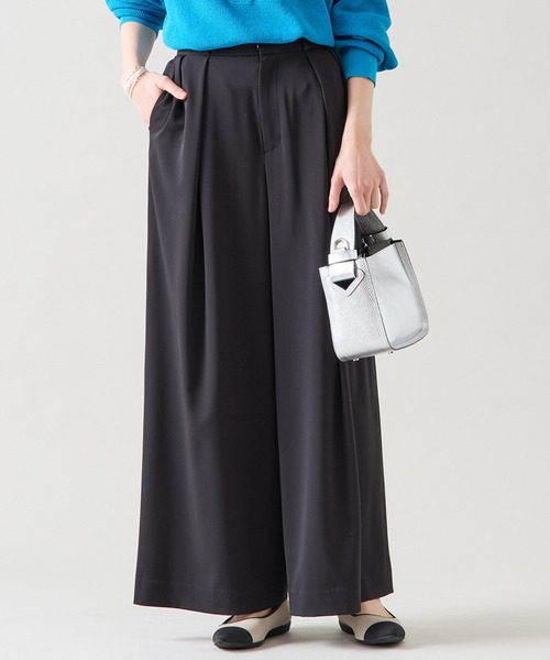 一見マニッシュな雰囲気のタックワイドパンツを 女性らしいドレープが綺麗な素材で楽しめます。 体のラインを拾わないワイドさでもすっきりとして見える洗練されたシルエットです。 同素材のジャケット(A0151FJM330)があります。 リラックスがキーワードの今、大人が着る ジャージ素材のような着心地でもきれい見え素材。 360°ストレッチの抜群の着心地で、 シルクのような軋み感と美しいドレープ性も兼ね備えています。 ■透け感 なし ■伸縮性 ややあり ■光沢感 なし ■裏地 総裏 ■生地の厚さ やや薄い
