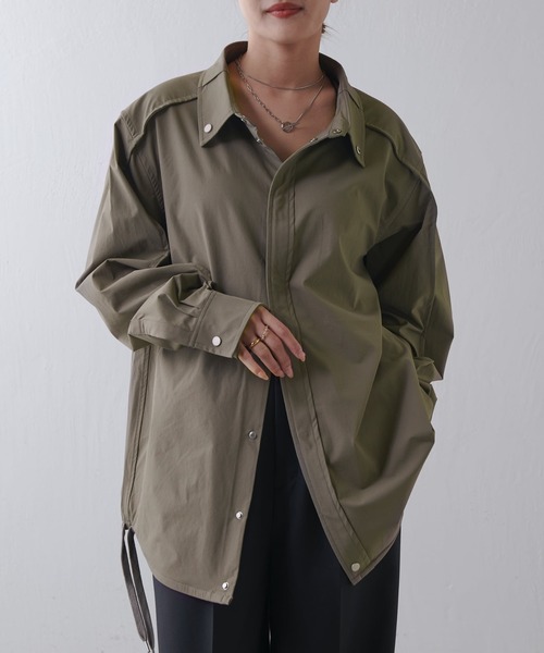 【SUPERTHANKS】 Outsider shirt blouson ●デザイン ややスポーティな素材感の中にモード調のディテールが効いたシャツブルゾン。 肩から袖の切り替えデザインがポイント。 サイドの紐は、絞ってグラウジングすることでカジュアル要素をプラスできます。 バックスタイルにはタックとワンポイント刺繍。 襟はボタンで立ててハイネック仕様にできます。 ●素材 光沢の少ないナイロンにウレタン混の素材を使用。 ●スタイリング シャツとしてブルゾンとして2WAYで着こなせます。 同じ展開のボトムスとのセットアップもおすすめ。 【SUPERTHANKS / スーパーサンクス】 「ありがとう」を形にしたブランド。 「頑張っている」自分へのご褒美にまた大切な人への贈り物に「SUPERTHANKS=最高のありがとう」を!! セットアップアイテムの展開や、ビッグシルエットのTシャツやスウェット、パーカーも得意とし、定番のデニムやモッズコートなどのアウター類、小物も展開します。 【ブランド】 Lui's FEMME(ルイス ファム) 凛とした芯のある女性。 自立した、女性のワードローブをイメージ。洗練されたかっこよさの中に、女性らしさ・かわいさ・セクシーさを持つ。自分自身のスタイル(自分らしさ・個性・生き方・感覚...)を表現できるひとつの手段としての服。肩肘張らない、心地よいリラックス感のあるスタイルを上質な素材、優雅なシルエットで提案。 《商品画像について》 ご覧頂いている商品の写真につきましては、できるだけ実物の色に近くなるように努めておりますが、お使いの環境(モニター、ブラウザ等)の違いにより、色の見え方が実物と若干異なる場合がございます。 予めご了承ください。 《予約商品について》 ・こちらの商品はサンプルでの撮影・計測となっております。実際の商品とは、商品の一部仕様が変更になる場合がございます。 ・撮影サンプル品はブランドタグがついておりません。製品にはタグがつきますので、製品の表に縫い糸が見えたり、着用時にタグが透ける場合がございます。 ・サンプルの為、混率の詳細が確定しておりません。確定次第、記載いたします。 ・工場の生産の都合上、納期が変更になる場合がございます。発送日の前後についてはあらかじめご了承ください。 ・入荷状況により、お客様への発送が店頭販売より遅れる場合もございます。 ・店頭に陳列していた商品も含まれる場合がございます。 《ハートをタップして商品のお気に入り登録》 登録カラーの商品の「残りわずか」「再入荷」「値下げ」通知を受け取ることができます。 各ショップアプリにてブランドフォロー 新商品などの入荷情報、最新のニュースやお得な情報を受け取ることができます。