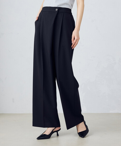 \きれいめにもカジュアルにもおすすめ/ 《デザイン》 ラップ風デザインのワイドパンツです。 覆い布の内側にはファスナーと内釦が付いています。 ウエストタックから自然に繋がるセンタークリースによりうれしい縦長効果。 スタイルアップを叶えます。 後ろウエスト部分のみゴムを通すことで、 きちんと感がありながらもリラクシーな穿き心地と ストレスフリーな着脱を実現します。 《素材》 ポリエステルレーヨン混紡のストレッチ素材です。 滑らかで程良いストレッチ性と肉感があり、リラックス感のある生地です。 さらっとした素材感で肌離れが良く、快適にご着用いただけます。 …………………… 透け感:なし 厚さ:中肉 伸縮性:あり 裏地:なし …………………… ■気になる商品はお気に入り登録をおススメ■ ▼商品のお気に入り登録 完売アイテムの再入荷通知、ラスト1点、またクーポンやお値下げ通知をお知らせします。 ▼ブランドのお気に入り登録 新作アイテムの入荷や人気アイテムの再入荷、タイムセールやクーポンなど、 いち早くブランドのお得な情報を受け取ることができます。 ※画像の商品はサンプルとなりますので実際の商品と仕様、加工、サイズが若干異なる場合がございます。 ※こちらの商品はFIVE FOXes独自の採寸方法となっています。 本サイトのサイズガイドと採寸方法が異なる場合がありますのでご了承ください。