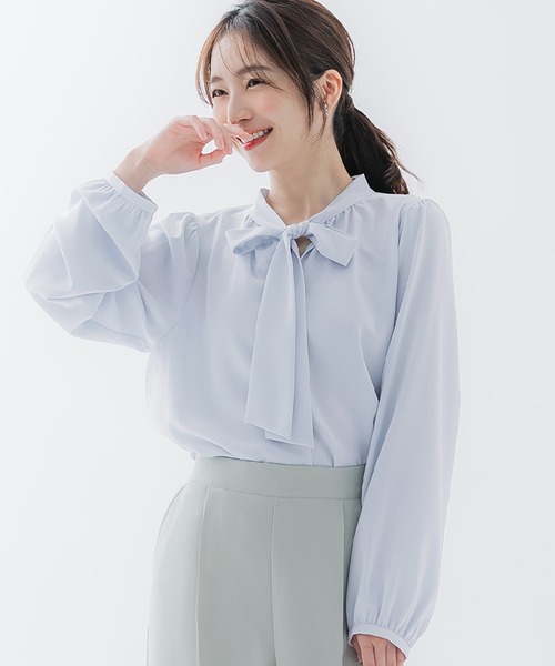ボウタイが顔まわりを華やかに彩る、上品ボウタイブラウス ■デザイン・シルエット ボウタイデザインが顔まわりを華やかに演出する、上品な印象のブラウス。 シンプルながらも存在感があり、きちんと感のあるスタイルに仕上がります。 程よくゆとりのあるシルエットで、体のラインを拾いにくく、すっきりとした着こなしが叶います。 ■素材 ・ハリ感のある素材を使用し、型崩れしにくい ・きれいなシルエットをキープし、上品な印象を演出 ・さらっとした着心地で、快適に着用可能 ■コーディネート テーパードパンツやスカートと合わせて、通勤やオフィスシーンにおすすめ。 ジャケットのインナーとしても映え、きれいめスタイルが簡単に完成します。 オン・オフ問わず活躍する、着回し力の高い一枚です。 伸縮性:なし 透け感:ホワイトのみあり 裏地:なし ポケット:なし 生地感:とろみのある薄手生地 注意点:お洗濯方法によっては縮みや色あせの可能性あり。乾燥機等のご使用はお控え下さい。 ▼生地や素材の性質により2cm前後サイズ誤差が出る場合がございます。 ▼モデル着用写真は撮影環境により、多少実際のカラーと異なる場合がございます。 ▼色落ちの恐れがありますので、他のものと分けて洗って下さい。 ▼当商品は機械による生産の過程上、『生地を織る際の糸の継ぎ目』や多少の『ほつれ』、繊維の『混紡』、形やサイズに多少の『誤差』が生じる場合がございます。 トップス ボウタイ風アクセ付きブラウス しわになりにくい 薄手 紫外線カット ミディアム丈 上品 オフィス 冠婚葬祭 入学式 卒業式 26ss コカ COCA coca COCA coca