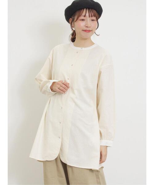 襟とカフの配色デザインがアクセントになった柄アソートのクレリックチュニック。 首のラインや顔周りをすっきりと見せてくれるネックデザインもポイント。 ヒップラインもカバーしてくれる長めの着丈で気負いなくスタイリングすることができます。 シンプルに着るのはもちろん、ベストと重ね着したり、前開きで羽織風と着こなしのアレンジも楽しめる1着です。 ※商品画像は、撮影環境やお客様のご利用のPC・スマートフォンのモニター環境などにより実物と色味に差異がある場合がございます。