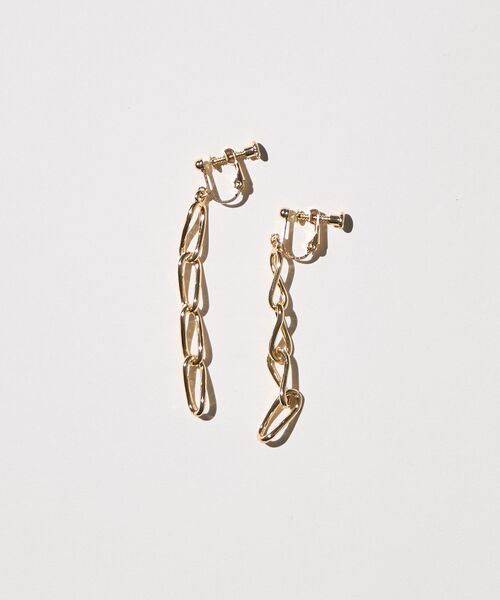 ゆらゆらと揺れるニュアンスが女性らしい存在感のあるイヤリング。やや大きめのねじりチェーンモチーフがエレガントに印象付けるシンプルなデザインです。付け外ししやすいネジバネ式で負担なく合わせられるのも嬉しいポイント。きれい目スタイルからカジュアルなコーディネートまで幅広く活躍してくれるアイテムです。※モデル着用画像は、光の当たり具合で色味が違って見える場合がございます。商品の色味は、物撮りの画像をご参照ください。●AMERICAN HOLIC ● (アメリカンホリック)大人の女性の毎日を軽やかで豊かにするブランド。カジュアルなのにオシャレ、コーディネートも楽。ONにもOFFにも等身大で楽しむオトナの日常着をテーマに、スタイリッシュかつ自然体を楽しめるカジュアルスタイルを提案します。 ▼ 商品のお気に入り登録がおすすめです ▼商品ページ内のハートマークをクリック。完売時の再入荷や、最後の1点の通知、お得なお値下げの際の通知を受ける事ができます。【お知らせ】ページでも通知が確認できます。