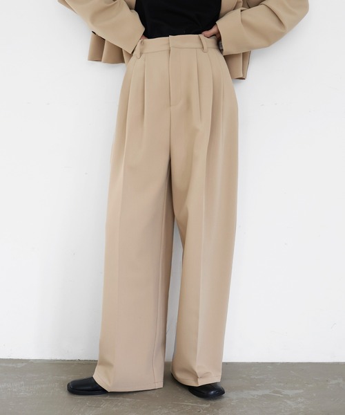 どんなトップスとも相性抜群!1枚持っておきたいタックパンツ【design】・マットな質感で程よい落ち感のあるワイドタックパンツ・しっかりと厚みのあり、高見えする生地を使用・フロントに施したスリータックとワイドシルエットがポイント・ワイドながら、ウエスト周りはスッキリと仕上げることでメリハリのあるシルエットに・気になる腰周りもしっかりカバー・センタープレスでよりきれいなシルエットに仕上げました・SMLのスリーサイズ展開で、低身長の方から高身長の方まで着用可能・ベルトループ付きで、ウエスト周りはご自身に合わせて調整いただけます・様々なトップスと相性抜群、トップス次第でカジュアルにも、きれいめにも着こなせます・Tシャツやニットはもちろん、スウェットと合わせてカジュアルダウンとしてもおすすめ・アメスリタンクやキャミソールなどシンプルなアイテムと合わせてもこなれた印象に仕上がります・シャツやブラウスと合わせてオフィスカジュアルとしても着用いただけます・多色買い間違いなしのおすすめパンツです------------裏地 あり透け感 なし伸縮性 なし光沢 なしポケット あり洗濯方法 手洗い不可------------【code item】▼商品コードを長押しコピー→検索セットアップアイテム:テーラードショートジャケット商品コード:91748458着用アイテム:チェックオーバーサイズシャツ商品コード:91410756着用アイテム:袖折り返しテーラードジャケット商品コード:91373566※生産の関係上、記載のサイズより1~2cm誤差が生じる場合がございます。ご了承の上ご購入いただくようお願いいたします。※お使いのモニター設定、お部屋の照明等により実際の商品と色味が異なる場合がございます。物撮り写真はできる限り実物の色に近づけるようにしておりますので、色に関しては商品の物撮り写真をご参考ください。▼もっとお買い物を楽しんで頂く為に▼〈商品のお気に入り登録〉お気に入りの登録をして頂きますとセールの通知・ラスト1点になった時の通知や、再入荷通知を受けることができます。〈ブランドのお気に入り登録〉新商品の発売や再入荷、タイムセールやクーポン発行のお知らせなどhellamがお届けするお得な情報を受け取ることができます。