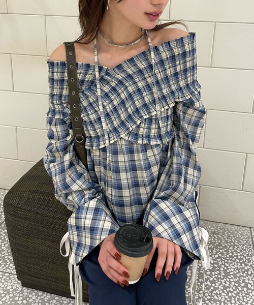 コーデを華やかにしてくれるブラウス!■POINTトレンドのオフショルブラウス★デコルテ周りはゴムシャーリングを入れているので肌見せ具合も調整可能です。チェック生地でカジュアルダウンさせたデザインなので、普段オフショルなどを着ない方でも挑戦しやすいデザインにしています。付属の共生地のチョーカーと合わせるとぐっとトレンド感が出ておすすめです。■STYLINGあえてデニムやカジュアルなボトムと合わせるミックススタイルがおすすめです!■FABRICさらりとした薄手のチェック生地を使用しています。春夏涼し気に着用できます。ーーーーーーー 透け感:透けない 伸縮性: あり 生地の厚さ: 普通 裏地: なし ーーーーーーー ※こちらは参考情報となります。カラーにより多少の誤差がございます。■お手入れについて洗濯:手洗い可タンブル乾燥:不可漂白:不可自然乾燥:日陰でつり干しアイロン:120℃まで可クリーニング:可※詳細は製品のタグ情報をご確認ください。■スタッフレビュー(163㎝ ブラック)サイズ感は163cmでもジャストサイズ!幅広い身長の方が着れるアイテムです★(165㎝ ブルー)肩周りが柔らかいゴムになっているので、窮屈感なく着用出来ます♪クロスのデザインがウエスト周りをスッキリさせて見せてくれるので、着痩せ効果も!< FOREVER21/ CONCEPT >新しい価値観を表明するコミュニケーションテーマは「Wear No Filter」'一人一人のリアルを、美化したり、ぼかしたりすることなく、着ることでむしろ、その人らしさが裸になっていく。そのままを映し出すこと。それらが最も魅力的だと信じる、FOREVER21の合言葉。”新生FOREVER21は、様々な現代的な価値観へのリスペクトと共鳴を、様々なクリエイションに表現していきます。気になる商品は「お気に入り」登録がおすすめ!お気に入り登録商品は、マイページにて現在の価格情報や在庫状況の確認が可能です。お買い物リストの管理に。是非ご利用ください。【注意事項】※実際の商品と色味、仕様、加工、サイズ、素材等が若干異なる場合がございます。※商品を使用前に、タグ等に記載されている「取り扱い上の注意書き」、「洗濯表示」を必ずご確認ください。※商品画像は、光の当たり具合やパソコンなどの閲覧環境により、実際の色味と異なって見える場合がございます。予めご了承ください。※商品の色味の目安は、商品単体の画像をご参照ください。<色落ちの可能性がある場合>※汗や雨などで湿った状態、または摩擦により変色したり他の物へ色が写ることがあります。※淡色衣料との組み合わせはお避け下さい。※濡れたまま放置しますと、他のものに色写りする恐れがあります。