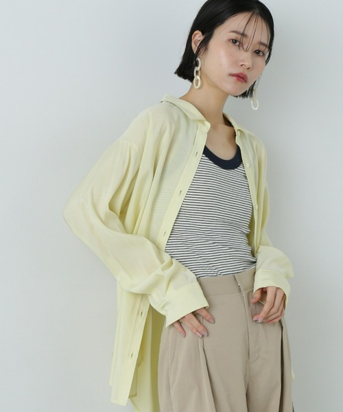 一枚でも羽織りでも、幅広いシーンで使えるオーバーシャツ。シンプルで着心地が良い、ゆったりとしたシルエットです。裾サイドはラウンドカーブが入っているので、アウトスタイルも様になるデザイン。ほどよく透け感のある素材なので、お持ちのインナーを合わせると安心です。●取り扱いについては、商品についている品質表示でご確認ください。●撮影はサンプル商品で行っている為、仕様とサイズが異なる場合がございます。●スタジオ及び屋外で撮影した着用画像は、光の当たり具合やご覧のモニターによって色味が違って見える場合があります。予めご了承ください。●生産時期により色・素材・サイズ感など多少異なる場合がございます。予めご了承ください。≪お買い物をよりお楽しみいただくために!≫・「商品のお気に入り登録」再入荷通知や、ラストの通知、セール通知も受け取ることができます。・「ブランドのお気に入り登録」新商品や再入荷をはじめ、タイムセールやクーポンなどいち早くブランドお得な情報を受け取ることができます。