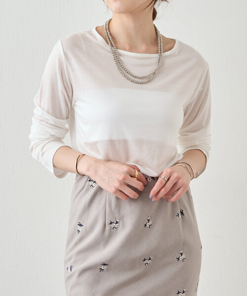 着回し抜群! コーディネートに抜け感をプラスしてくれるシアートップス 1枚でトップスとしてもインナー使いにも着回しが効くシアーロンTee。 優しいフィット感と伸縮性で着心地が良い一着になっています。 程よい丈感でインでもアウトでもきれいに着て頂けます。 様々な着こなし方でロングシーズンお楽しみ頂ける万能アイテムです。 左裾に付いたチャームもポイント〇 - - - - - - - - - - - - - - - 透け感:あり 裏地:なし 伸縮性:あり 光沢感:なし 生地の厚さ:薄い 取り扱い:手洗い可 - - - - - - - - - - - - - - - ※撮影環境により、光の当たり具合で色味が違って見える場合があります。あらかじめご了承下さい。 ※画像はサンプルの為、実際にお届けする商品と仕様が異なる場合がございます。 ※裏返してネットに入れて洗ってください。 ※色物と白物を一緒に洗濯しないでください。 ※長時間濡れたままで置かないでください。 ※形を整えてから干して下さい。 ※タンブル乾燥はしないでください。 ※アイロンは形を整える程度に軽くかけて下さい。 ※この製品の生地は表面が引っ掛かりやすい為、着用時や着脱時に、指輪やバッグなどの身の回り品との引っ掛かりにご注意ください。 ※洗濯やクリーニングの際は裏返して処理するかネットをご使用下さい。 ■「商品のお気に入り登録」で ハートマークをクリックし、お好きなカラーを選んでお気に入りに登録すると 入荷情報や残り1点の通知、完売カラーの再入荷、セール情報などを受け取ることができます。 登録して頂いた商品だけが対象となる、あなただけのタイムセールが開催されることも! ■「ブランドのお気に入り登録」で 新商品や再入荷など、いち早くSHENERYのお得な情報を 受け取ることができますので、ご登録をおすすめします!