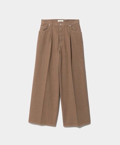 【デザインの特徴】 ・男女問わずに履けるバギーパンツ ・ウエストはスラックスを思わせるワンタック仕様 ・クリースラインでフォーマルなテイストを持たせ着用シーンが広がるパンツ ・フロントファスナー開き ・ロゴ入りのネオバ―釦とリベットを使用 ・右腰のレザーネームタグがポイント ・フルレングス 【素材のこだわり】 ・定番デニム同様の12オンスセルビッチデニム ・経糸には鉄媒染を施した茶綿を80%使用 ・茶綿と生成りのスーピマオーガニックコットンを紡績した杢糸 ・茶綿とは生まれながらにして自然の色を持つカラードコットン ・自然の害虫に強く農薬に頼らずに育てることが可能 ・経糸、緯糸ともにオーガニックコットンを使用 ・耳糸の部分に入ったドビー織りのステッチが特徴 ・耳部分 FOXbrown×FOXgreen ※自然の色合いの為、色の個体差が出る可能性があります ※トップスとボトムスをセットでお求めの際は同時期をお勧め致します