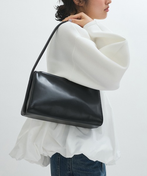《オケージョン対応》すっきりしたデザインでデイリーからセレモニーまで幅広く活躍。今シーズントレンドでもある横長のワンハンドルバッグ。◇2025春夏◇ADAM ET ROPE' FEMME【Material】表地:微光沢のあるフェイクレザーを使用。 裏地:ペットボトルを再利用したリサイクルポリエステルを使用。 【Design】今シーズントレンドでもある横長のワンハンドバッグ。軽量できちんと自立するデザイン。普段使いはもちろん、オケージョンシーンなどにもおすすめ。 肩掛けしやすいクッション性のあるハンドルと、ちょうど良いハンドルの長さもポイント。 【Color】ブラック、クリームの2色展開。----------------------------ポケット:あり(内2個)収納:長財布→可 付属ショルダー:なし-----------------------------
