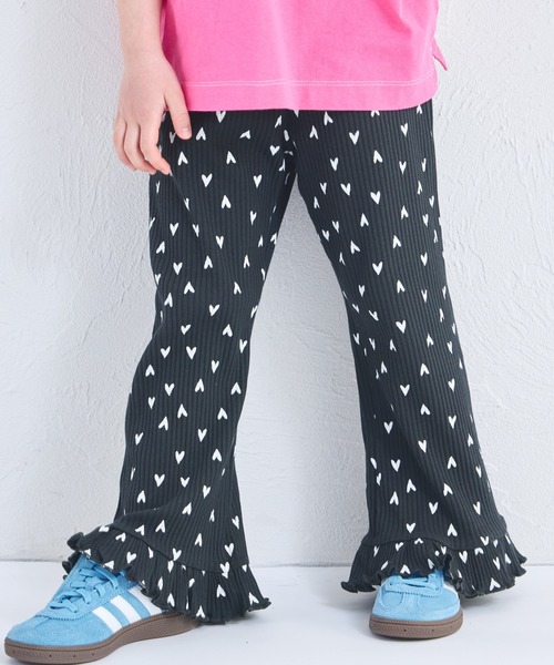 ストレッチ性抜群のリブ素材を使用したフレアパンツ。大人気だったアイテムが、カラバリ豊富に帰ってきました。裾のフリルがさりげないワンポイントデザイン無地と総柄からお選び頂けます。毎日の通園通学はもちろん、休日のコーディネートにも1枚は持っておきたい万能パンツです。【ポケット】なし【伸縮性】あり【透け感】透けない【クリーニング】洗濯機洗い可(ネット使用)【裏地】なしモニター・環境等により実際の商品と色味が多少異なって表示される場合がございます。また、生産時期により色味が若干異なる場合がございます。予めご了承ください。【濃色品・色落ち色移り】濃色品は、色落ち・色移りをする恐れがあります。摩擦(特に湿った状態での摩擦)や汗や雨などで他の衣料や下着(特に白物)に色移りしますので、十分ご注意ください。