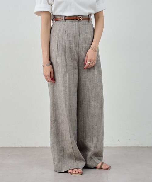 リネンの素材感が際立つ大人パンツ。 リネンのツイル素材にラメ糸を打ち込んだ光沢のあるリネン素材を使用したワイドパンツ。 カジュアルなトップスが増えるこれからの時期に程よく綺麗見えするパンツは重宝します。 Tシャツやカットソーを合わせてカジュアルに、シャツやシアージャケットを合わせて綺麗めなコーディネートもおすすめです。 - - - - - - - - - - - - - - - 透け感:なし 裏地:あり 伸縮性:なし 光沢感:あり 生地の厚さ:普通 取り扱い:手洗い可 - - - - - - - - - - - - - - - 【注意事項】 ※撮影環境により、光の当たり具合で色味が違って見える場合があります。あらかじめご了承下さい。 ※画像はサンプルの為、実際にお届けする商品と仕様が異なる場合がございます。 ■「商品のお気に入り登録」で ハートマークをクリックし、お好きなカラーを選んでお気に入りに登録すると 入荷情報や残り1点の通知、完売カラーの再入荷、セール情報などを受け取ることができます。 登録して頂いた商品だけが対象となる、あなただけのタイムセールが開催されることも! ■「ブランドのお気に入り登録」で 新商品や再入荷など、いち早くSHENERYのお得な情報を 受け取ることができますので、ご登録をおすすめします!