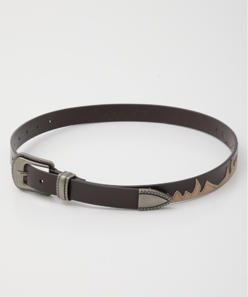 ■ポイントファイヤーモチーフを生地とステッチで重ねたオリジナルデザインのベルト。■ディティール女性でも付けやすい太さになっています。バックルもウエスタン調で、付けるだけで一気にトレンド感が出ます。■スタイリングデニムやパンツスタイル、ワンピースのアクセントにおすすめ。■素材天然皮革品のため、素材特性上、次の点にご注意下さい。表面にキズ、シワ、斑点、色ムラが見られる場合がありますがご了承下さい。また製品によって個体差があります。過度な力が加わると破損する事がありますのでご注意下さい。摩擦で他の物に色移りします。特に湿った状態で顕著になりますのでご注意下さい。水に濡れると変色する恐れがあります。水気はふき取り陰干ししてください。変色やカビの原因になりますので、高温多湿を避けて、光のあたりにくく、風通しの良いところに保管して下さい。お手入れは素材にあった皮革専用クリーナー等を使用してください。素材を生かした仕様になっている為、ご使用中の摩擦や振動によって革の粉が落ち、組み合わせた衣服等に付着する事がありますのでご注意ください。▼商品のお気に入り登録お気に入りアイテムの値下げ・再入荷・在庫1点などの通知を受け取ることができます。▼ブランドのお気に入り登録新作アイテムの入荷や人気アイテムの再入荷、タイムセールやクーポンなど、いち早くブランドのお得な情報を受け取ることができます。SPRING & SUMMER ( 春服 / 夏服 )