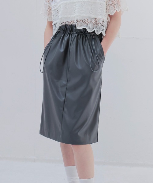 ■DESIGN艶やかな光沢とスムージーな質感が特徴のレザーライクスカート。調整がしやすいウエストゴム仕様で、好みのウエスト位置で着用可能。ウエスト端がアクセントになるのでフィットトップスをインして見せてもおすすめです。---------------------------透け感:なし裏地:なし伸縮性:なしケア方法:手洗い可※お洗濯の際は洗濯表示を必ずご確認ください。---------------------------