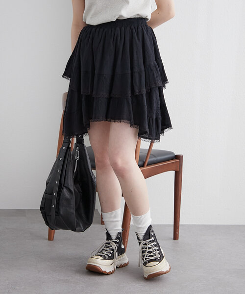 コットン素材で柔らかい印象のレーススカートが登場!▼デザイン・柔らかな風合いのコットンスカートは甘すぎずナチュラルに着こなせます・ウエスト総ゴムでストレスフリーな着心地も嬉しいポイント・パンツ型のインナー付きなので安心して着用していただけます▼コーディネート・あえてスウェットやロンTなどのメンズライクなアイテムと合わせるバランス感が可愛い・足元はスニーカーでカジュアルにまとめるのが◎※洗濯、取り扱い洗濯:40度限度 手洗いアイロン:低温120℃まで スチームなし(あて布使用)タンブル乾燥:不可--------------------裏地:あり(パンツ型)透け感:ややあり厚さ:普通伸縮性:なし(ウエスト総ゴム)--------------------【商品のお気に入り登録】お気に入りアイテムの値下げ・再入荷・在庫1点などの通知を受け取ることができます。【ブランドのお気に入り登録】新商品や再入荷、セール、クーポン配布などお得な情報を受け取ることができます。※サイト上のカラー名と、お届け商品に記載されているカラー名が異なる場合がございます。※商品の色味は、撮影場所や光のあたり具合などにより色味が違って見える場合が御座います。また、お客様のお使いのPCのモニター環境などにより色味が違って見える場合が御座います。予めご了承の上ご注文下さい。※ご注文いただいた予約商品のお届け時期の確認は、注文履歴ページより行えます。