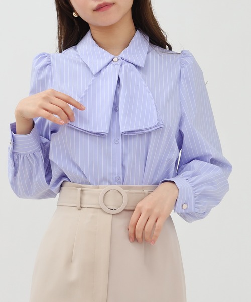 人気ブラウスのストライプデザインがリリース♪ 春らしい爽やかな細ストライプの生地に、ゴールドで縁取られたラメ感のあるボタンを添えたフェミニンブラウス♪ 肩と袖口にはフェミニンムードを高めるギャザーをプラス。 今までにないフリルのようなボウタイデザインはマンネリスタイルを脱却し、ジャケットから覗かせるのも◎ 襟付きできっちり感を与え、オフィスシーンにも活躍できるように仕上げました。 フレアスカートを合わせた王道フェミニンスタイルや シーズンムードを高め、きれいめカジュアルに仕【ASTORIA ODIER(アストリア オディール)】大人可愛いスタイルを提案するエレガンスブランドです。 オフィス、通勤スタイルを中心に日常を楽しくさせる女性らしいアイテムを展開しています。 オンスタイルからお出掛け・デートや女子会といった女性らしく魅せたい大切な日に◎ 組み合わせるアイテム次第で、きれい目×カジュアルのmixコーディネートも◎ ◆《お気に入り登録》でお得な情報を◆ ・「商品のお気に入り登録」 再入荷、ラスト1点、セール情報などの通知も受け取ることができます。 ・「ブランドのお気に入り登録」 新商品や再入荷など、ブランドのお得な情報を受け取ることができます。上がるデニムコーデまで幅広くお召しいただけます。