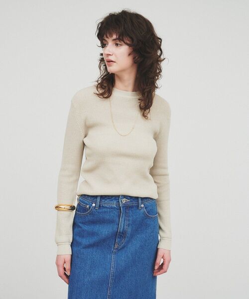 通気性の良い快適な着心地!ロングシーズン活躍するサーマルニット 【デザイン】 ・ワッフル素材の立体感が使いやすいシンプルデザイン。 ・腰回りまでの丈感が程よくインもアウトも楽しめる着丈。 ・袖口や裾のリブ仕立てがさりげないアクセントに。 【素材】 ・柔らかく軽やかで、さらっとした肌触りがポイント。 ・薄手で通気性が良く、春先から初夏まで活躍。 ※ウォッシャブル加工(手洗い可) 【着こなしポイント】 ・カジュアルなデニムやチノパンに合わせてリラックス感のあるデイリースタイルに。 ・女性らしいスカートとの組み合わせで、程よくカジュアルダウンした着こなしもおすすめ。 ーーーーーーーーーーーーーーーーーーーーーーーーーーーーーー 気になるアイテムはお気に入り登録がおすすめ! お気に入り登録で、再入荷通知やお値下げ情報をお知らせ。 お得な情報をいち早くお届けいたします! アイテムページにある、ハートマークをクリックして追加できます。 ーーーーーーーーーーーーーーーーーーーーーーーーーーーーーー ※照明の関係により、実際よりも色味が違って見える場合があります。また、パソコン・スマートフォンなどの環境により、若干製品と画像のカラーが異なる場合もございます。 店舗へのお問い合わせ商品番号:R91-12404 ●製品寸法: 02(M):着丈63cm B80cm 袖丈59cm 肩幅36cm 備考: