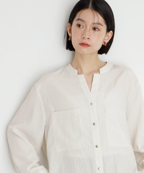 【デザイン】衿元にきざみが施されたスキッパーシャツは、モダンで洗練された印象を与える一着です。金釦がアクセントになり、シンプルながらも特別感を演出。Wポケットが機能性だけでなく、デザインにも独自性を加えており、カジュアルなスタイルにぴったりです。【素材】ラスティックな表面感を持つこのシャツは、自然な風合いが特徴で、味わい深い印象を与えます。肌触りがよくさらりと着ていただけます。環境に優しいサスティナブル素材を使用しています。【着こなしポイント】このスキッパーシャツは、デニムやチノパンと好相性です。リラックスしたカジュアルスタイルを楽しむことができ、シャツの衿元やデザインがさりげなくおしゃれさを引き立てます。ボトムスにスカートを合わせれば、より上品な印象を与えることも可能です。シンプルなアクセサリーを添えて、個性的なスタイルが楽しめます。【仕様】・ポケット数:胸元×2*****************************【骨格タイプ別おすすめスタイリング】■ストレートタイプ体のラインを強調するフィットしたスタイルが似合います。細身のパンツやスカートでスッキリとしたシルエットでまとめて!ウエストタックインですっきり見せると、ボディラインがきれいに見えて効果的です。■ウェーブタイプ柔らかい素材や雰囲気のスタイルが似合います。フレアスカートやAラインのスカートを選び、Xラインシルエットを意識すると素敵です。■ナチュラルタイプリラックス感があり、作り込みすぎないスタイルが似合います。ウエストアウトで着こなし、ボトムスにはワイドパンツやロングスカートゆるっとしたスタイルも素敵です。ストレートなパンツやアンクルパンツ合わせでスタイリッシュな着こなしもおすすめです。*****************************※照明の関係により、実際よりも色味が違って見える場合があります。また、パソコン・スマートフォンなどの環境により、若干製品と画像のカラーが異なる場合もございます。**********モデル情報:身長167cm B80 W58 H86 着用サイズ:12(M)店舗へのお問い合わせ商品番号:040-82026●製品寸法:12(M):着丈67cm B120cm 袖丈54cm 肩幅48cm13(L):着丈69cm B123cm 袖丈55cm 肩幅49cm備考: