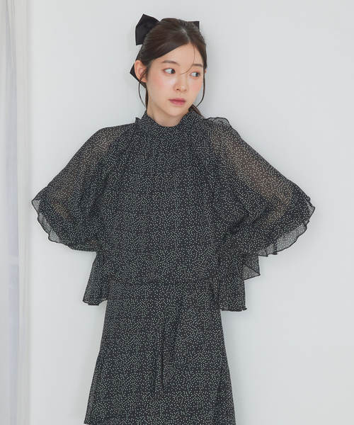 ◆detail袖と裾にフリルを施したハイカラーのエレガントなブラウス。 ショート丈でスタイルアップ効果もあり◎ ◆coordinate 同素材のスカートと合わせれば贅沢なフリルでワンピース風の着こなしが可能です。 ミニ丈でもロング丈のボトムスでもおしゃれな着こなしに仕上げてくれます。 ———————————— 透け感:あり 伸縮性:なし 裏地:一部あり 厚さ:薄手 ———————————— ※商品画像は、光の当たり具合やパソコンなどの閲覧環境により、実際の色味と異なって見える場合がございます。 あらかじめご了承ください。 ※画像の商品はサンプルです。 実際の商品と仕様、加工が若干異なる場合があります。 ※サイズ表記はあくまで目安となります。 ※商品を使用前に、タグ等に記載されている「取り扱い上の注意書き」「洗濯表示」を必ずご確認ください。 ♡商品のお気に入り登録♡ ・再入荷情報 ・完売間近のお知らせ ・セールの通知 ♡ブランドのお気に入り登録♡ ・新商品や再入荷などの情報をいち早くお届けします! -SELFIST 「“触れた瞬間、高嶺の花に” ときには可愛く、ときにはキレイに。 女の子のわがままを叶える魔法のワードローブ。」