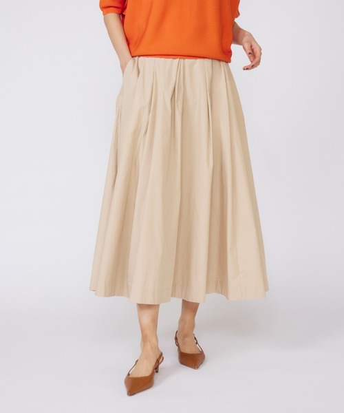 放射線状にハギをとり、タックを入れることで贅沢に揺れるシルエットを完成させたデザイン。歩くたびに動くヘムラインが印象的なシルエットです。コンパクトなトップスと合わせれば、今っぽく上品なバランスで着回せます。さらっとしたタフタ素材なのでシーズンレスで着用できるおすすめスカートです。 ・裏地あり・ウエスト後ろ部分ゴム仕様 ・左サイドファスナーあり ・ポケットあり ・水洗い可 ■サンプル撮影商品■ こちらの商品はサンプルでの撮影となっております。実際の商品とは、サイズや色味、素材、デザイン等の仕様が若干変更になる場合がございます。