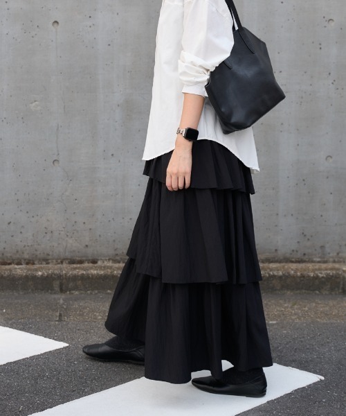 \\アシメティアード ロングスカート// 動きのあるシルエットで華やかに 大人のこなれ感を演出してくれる、 アシンメトリーティアードスカート。 歩くたびにふんわり揺れるヘムラインが、 シンプルなスタイリングにも華やかさをプラスしてくれます。ウエストは総ゴム仕様で、 ストレスフリーな着心地もうれしいポイント。 腰まわりをさりげなくカバーしながら、 体のラインをきれいに見せてくれます。 ✔️ アシンメトリー×ティアードで揺れ感のあるデザイン✔️ 締めつけ感のないウエストゴムでリラックスした着用感✔️ ヒップラインも自然にカバー✔️ コーデに取り入れやすいベーシックカラー展開(全5色)✔️ シンプルなトップスと好相性で着回し力◎ 【STYLING POINT】 ・ ロゴTやスウェットと合わせてカジュアルダウン・ シアーシャツやブラウスで女性らしくまとめて・ ショート丈トップスを合わせてスタイルアップ・ 足元はスニーカーでもパンプスでもマッチ ■TRIANGLE PALETTE/トライアングルパレット 何気ない日常も、どこか特別に。 シンプルだけど、ちゃんと今の気分を感じられる。 大人の毎日にそっと馴染み、 自然体の自分を引き立てるスタイルを提案します。 @trianglepalette インスタグラムでは発売前のアイテムやクーポン・お買い得情報など様々な情報を配信中! ▶ コーディネート投稿はこちら @trianglepalette_style 【お気に入り登録がオススメ】 ・「商品のお気に入り登録」で再入荷通知や、ラストの通知、セール通知も受け取ることが出来ます。 ・「ブランドのお気に入り登録」で新商品や再入荷など、お得な情報を受け取ることが出来ます。 ※商品画像は撮影時の光や角度により、実物の味と違って見える場合がございます。 ※生産時期により色・素材・サイズ感など多少異なる場合がございます。予めご了承ください。
