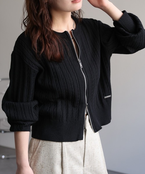 ap retro 【プレート付ベビーケーブルZIPカーデ】 コンパクトなシルエットで細見え抜群のケーブルカーディガン《styling》 着丈が長すぎないので、ボリューム感のあるボトムスとの相性が◎デニムと合わせて大人カジュアルに着こなせます。ダブルZIPなのでシルエットを変えてスカートやワンピースとのコーデもおすすめです。インナーをキャミソールやタンクトップで合わせれば、ロングシーズンお楽しみいただけます。 《detail》 綿混でさらっとした肌触りなので、春夏の季節にピッタリです。細いケーブル編みが特徴で、左前下にオリジナルのプレートが付いています。短すぎず長すぎず、絶妙な丈感もポイントです。カーディガン / ダブルZIPカーデ / ベビーケーブルニット / オフィスライク / 大人カジュアル 【Information】※撮影時のライティングやご覧になっているモニター・PC環境により、 実際の商品と色味が異なって見えることがございます。予めご了承くださいませ。※予約商品は追加生産のため、商品によっては多少色味が異なる場合もございます。※モデル着用画像はサンプル品のため、実際の商品とは仕様・加工・サイズが多少異なる場合がございます。※着用、お取り扱いの際は、商品に付いている品質表示とアテンションタグを必ずご確認ください。※ご注文いただいた予約商品のお届け時期の確認は、注文履歴ページより行えます。 ※他のキャンペーンにより、期間中に価格が変動する場合があります。※セールは予告なく終了させていただく場合もあります。 【お買い物をよりお楽しみいただく為に】 <Instagram> apretro_official 新作情報やルックを配信中 ★商品のお気に入り登録★ ♡のクリックをおすすめします。 完売カラーの再入荷や、ラスト1点の通知、 セールの際の通知を受ける事ができます。 ★ブランドのお気に入り登録 ★ 新商品情報やお得な情報をいち早く通知されます。 ぜひ、登録お願いします♪