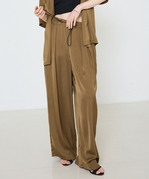 ≪2026年春の新色登場≫ -Design- ヴィンテージ調の程よい光沢と落ち感の生地が特徴のドロストパンツ。脇のポケットのカンヌキが配色になっているのがポイント。SSシーズンの着こなしに映える主役級な特別な一枚です。 ウエストの長いコードと、ゆるめのシルエットがコーデに抜け感とこなれ感をプラスしてくれます。 -Cordinate- 同素材のシャツと合わせて、セットアップで着るのが一番のオススメ。 丈の短いシャツやTシャツ等とも合わせてスタイルアップ。 -クリーニング方法- 手洗い可 \同素材のシャツと合わせてセットアップ/ ヴィンテージサテン 開襟 シャツ [商品番号:38503810007] 【注意事項】 ※商品画像は、光の当たり具合やパソコンなどの閲覧環境により、実際の色味と異なって見える場合がございます。あらかじめご了承ください。 ※画像の商品はサンプルです。 ※商品の色味の目安は、商品単体の画像をご参照ください。 ※商品を使用前に、タグ等に記載されている「取り扱い上の注意書き」「洗濯表示」を必ずご確認ください。 ※商品に不良が無い場合、包装紙および箱の破損がございましても発送いたします。あらかじめご了承ください。 ============== ▼商品のお気に入り登録▼ ♡をタップorクリック!完売カラーの再入荷や、ラスト1点の通知、セールの際の通知を受ける事ができます。 ▼ブランドのお気に入り登録 ▼ 新商品や再入荷など、ブランドのお得な情報をいち早く受ける事が出来ます。 ==============