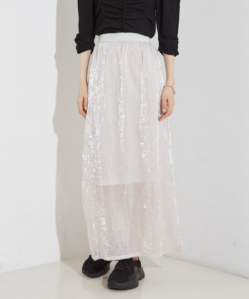 -Design-シアーな透け感とワッシャー加工が生む表情豊かな生地を使用したタイトスカート。シンプルながら、1枚で主役級の存在感を放つデザインです。ペチコート付きで安心感がありつつ、ペチコートを外してパンツとレイヤードしたり、ペチコートの丈を調節して絶妙なシアー感を楽しむなど、着こなしの幅が広がるのも魅力。さらに、同素材のTシャツと合わせれば、洗練されたセットアップスタイルが完成。カジュアルにもモードにも対応できる、万能な一枚です。【注意事項】※商品画像は、光の当たり具合やパソコンなどの閲覧環境により、実際の色味と異なって見える場合がございます。あらかじめご了承ください。※画像の商品はサンプルです。※商品の色味の目安は、商品単体の画像をご参照ください。※商品を使用前に、タグ等に記載されている「取り扱い上の注意書き」「洗濯表示」を必ずご確認ください。※商品に不良が無い場合、包装紙および箱の破損がございましても発送いたします。あらかじめご了承ください。▼商品のお気に入り登録をおすすめします▼♡をクリック!完売カラーの再入荷や、ラスト1点の通知、セールの際の通知を受ける事ができます。▼ ブランドのお気に入り登録 ▼新商品や再入荷など、ブランドのお得な情報をいち早く受ける事が出来ます。こちらもぜひご登録ください。